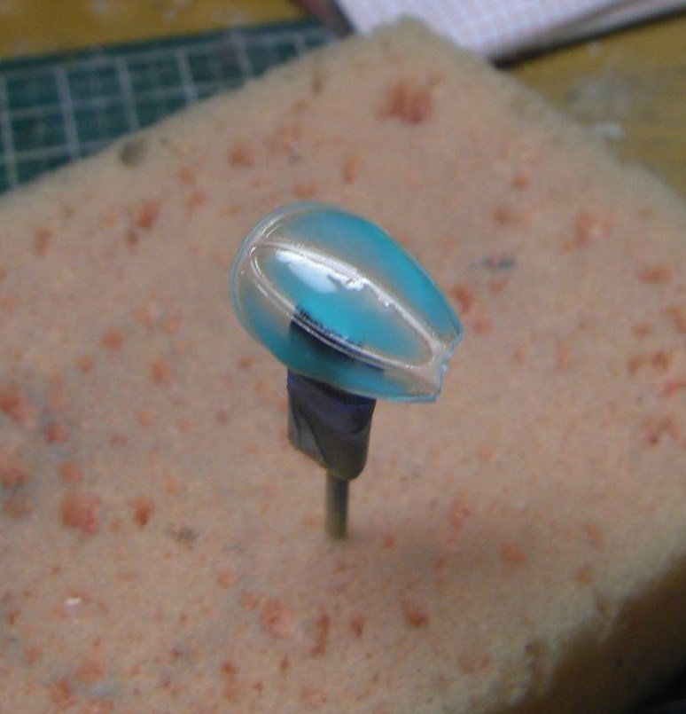 で、キャノピーにも小さいパーツが着くので同じ要領で接着用の窪みを作っていたところ、キャノピーの先端が欠けました(汗)