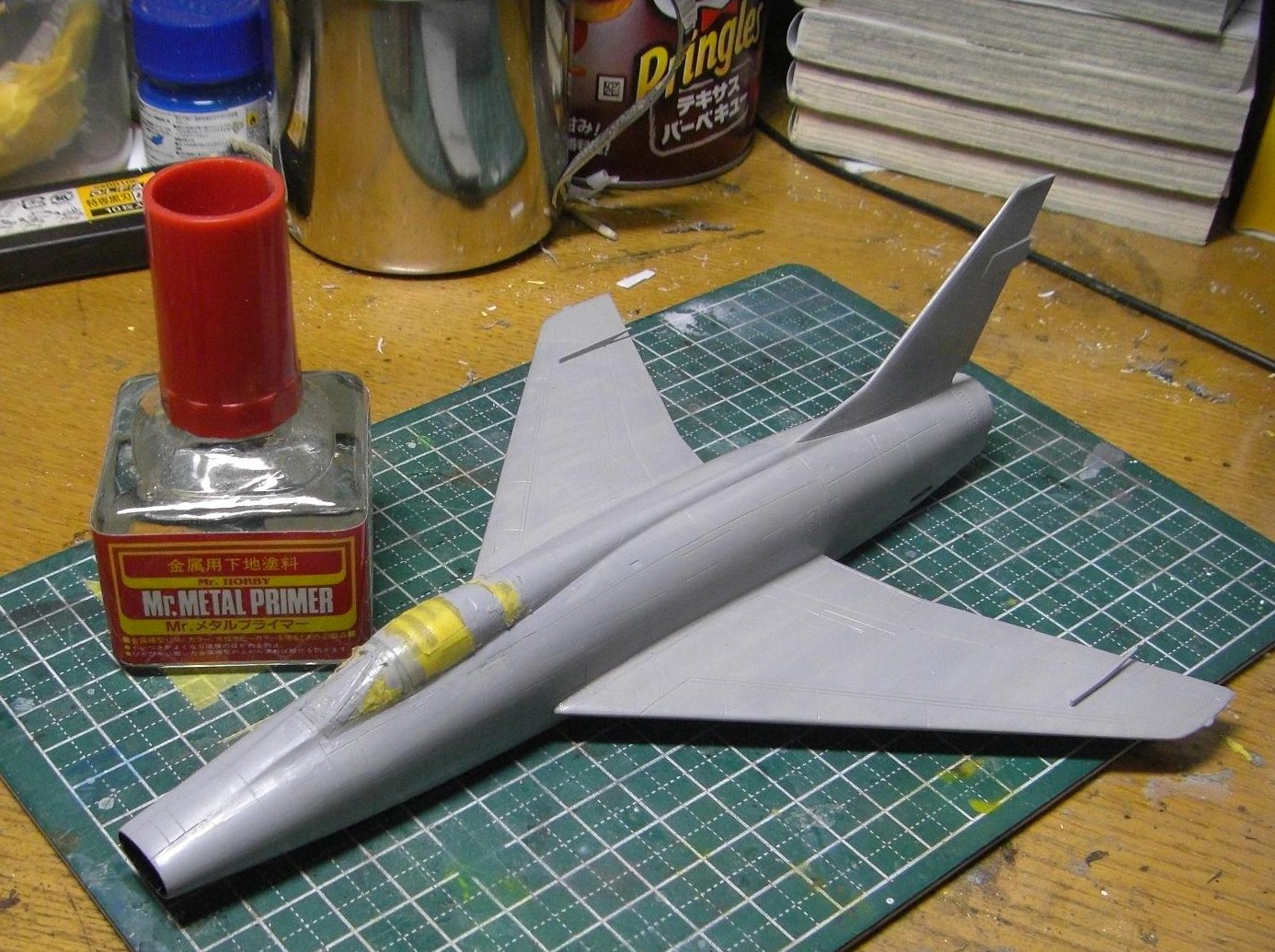今回は全身「金属色」という事で、いまいち食い付きの悪いメタルカラーを塗るため、その下地としてメタルプライマーを塗りました。少しばかりテカッてるのはその証です(笑)