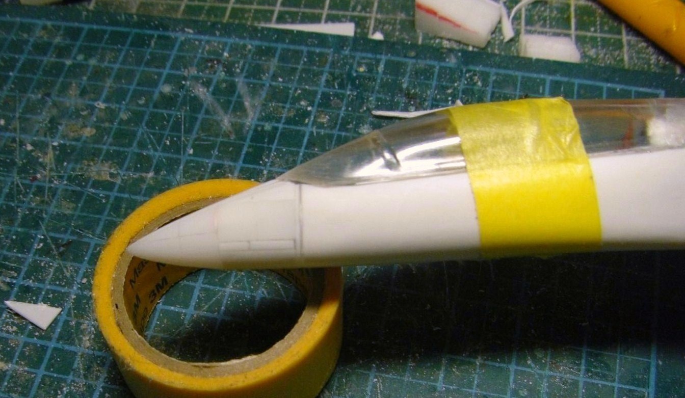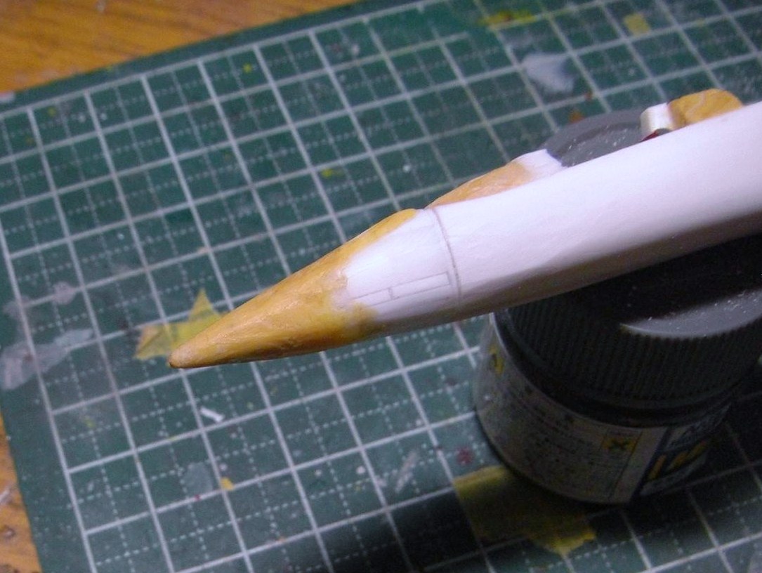 またもや機首の加工になりますが、今回はさらに延長するため、ポリパテをもう少し盛りました。
