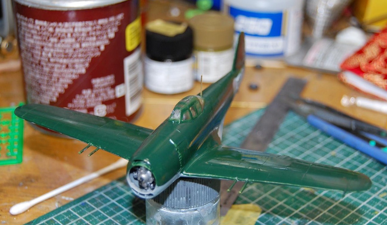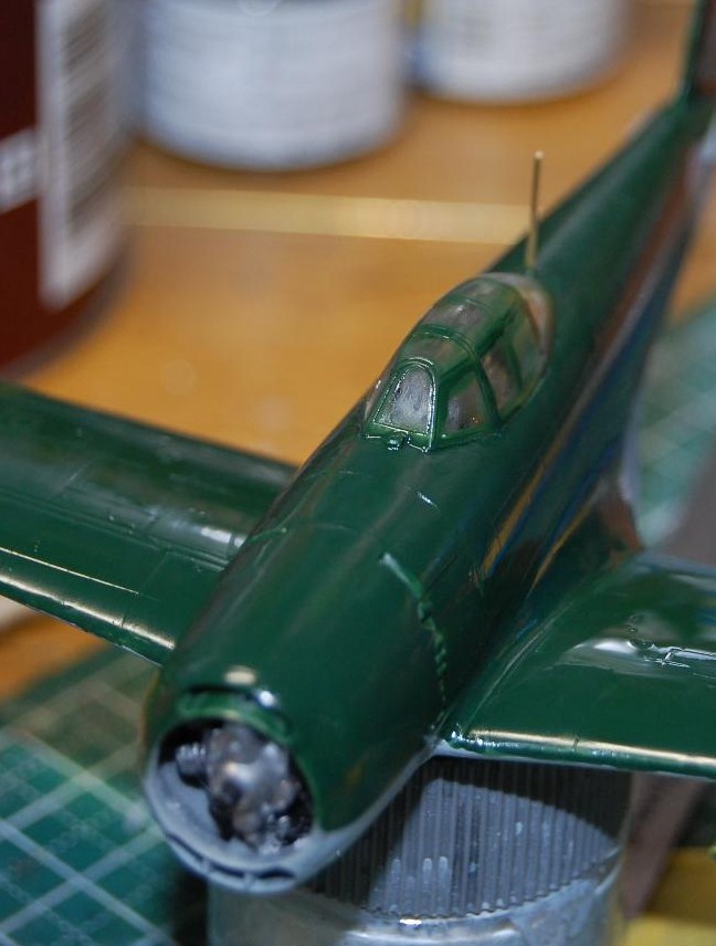 キャノピーはマスキングせず大ざっぱに塗装。後で乾いてから余りを綿棒で落とす予定です。