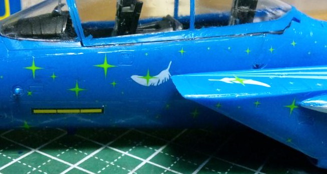 機首の根元やインテーク横の小さなデカール・・・って言っても細かすぎるから分かりにくいかなぁ。あと黄色いラインのデカールも。