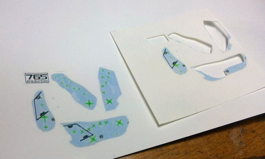 今回はホワイトデカールなので、案の定下の台紙の色までそのままデカールに印刷されてしまいまいした。
