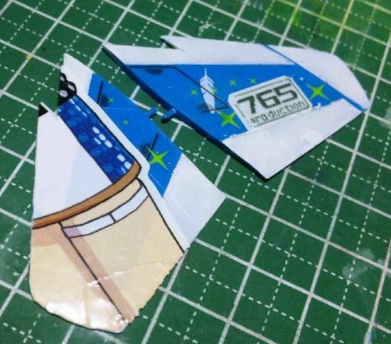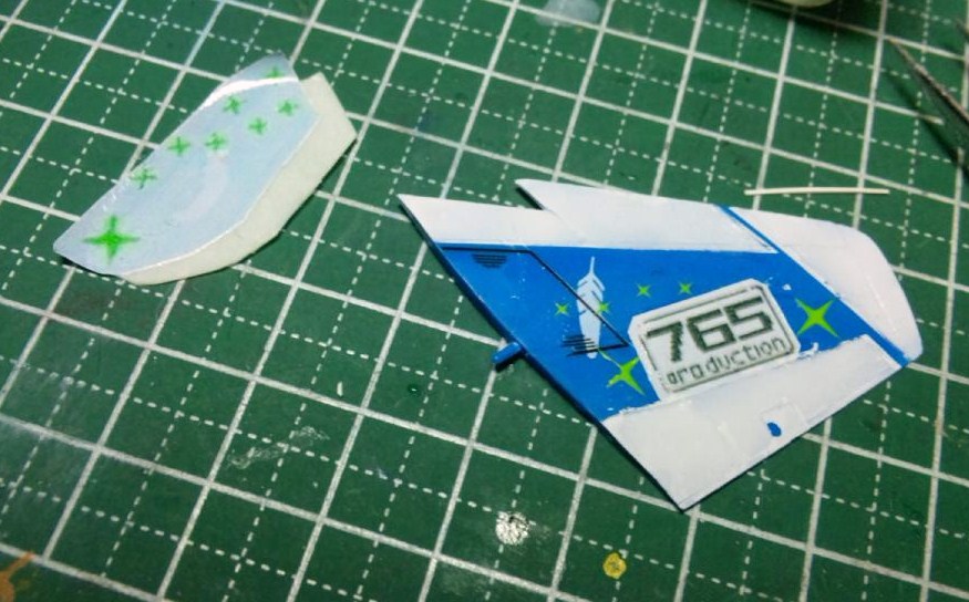 765プロのロゴに関しては、前のクリアデカールでは白い部分も透けてしまうのが難点でしたが、今回は透ける事なく満足なものが出来ました。欲を言えば文字部分だけは透ければ完璧なのですがね(笑)