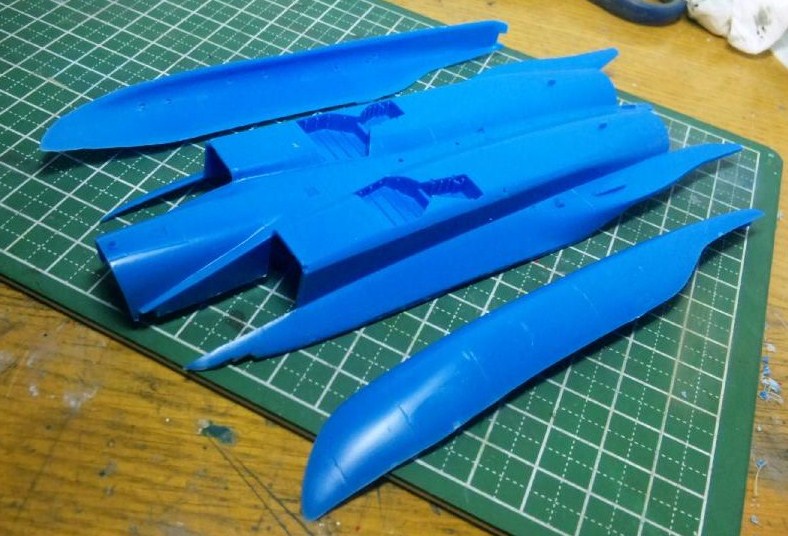 とりあえず胴体も一応製作中。機体色はコバルトブルーとスカイブルーを半々で混ぜたものを使用しました。