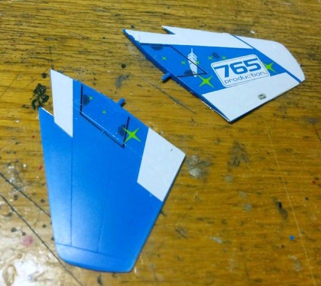 あと、いよいよデカール貼りを開始してみました。まずは尾翼から。