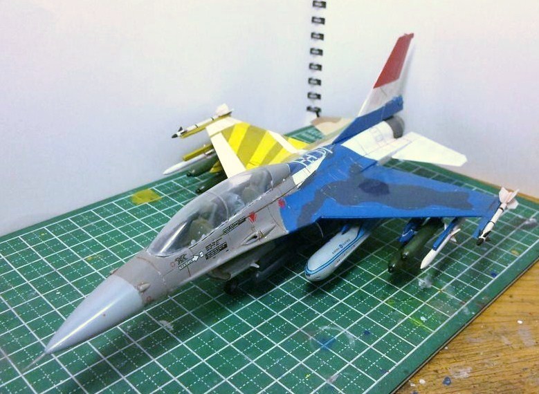 今回はF-16とその系列機の塗装パターンを複数ぶち込んで見たので、かなりカオスな色合いとなっております(笑)