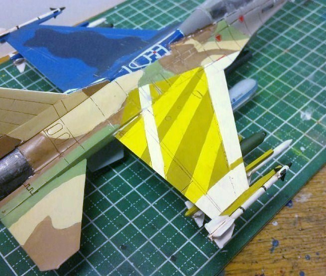 右尾翼~機首付け根にかけては、イスラエルのF-16Iを参考に塗装。