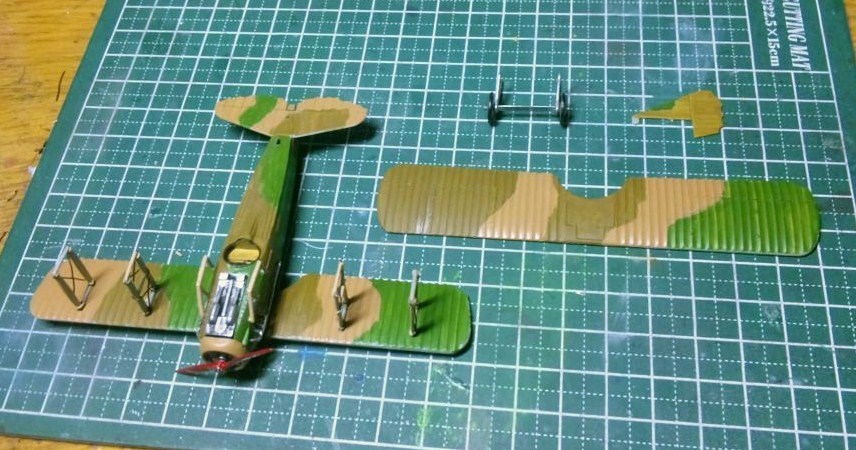 フム、こうなったら後はデカール貼ってワイヤー張ってパーツ貼って・・・って「はって」使い過ぎィ!