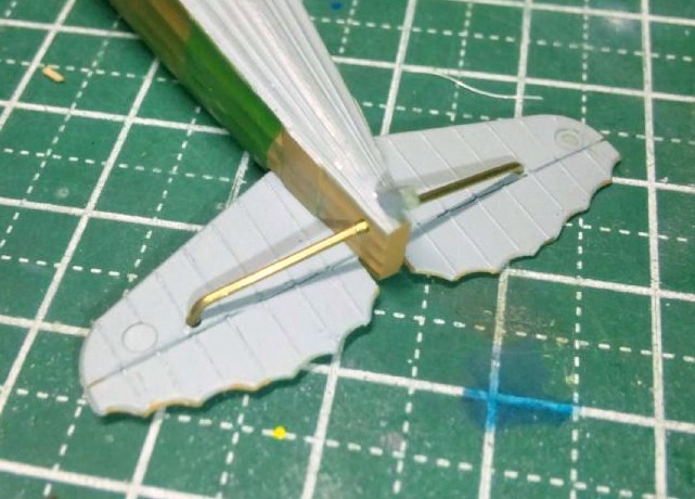 尾翼の支柱は、最初長すぎると思って端を切ったら実は短すぎたというアホみたいな事をしでかしてしまったので、真鍮線で作り直しました。