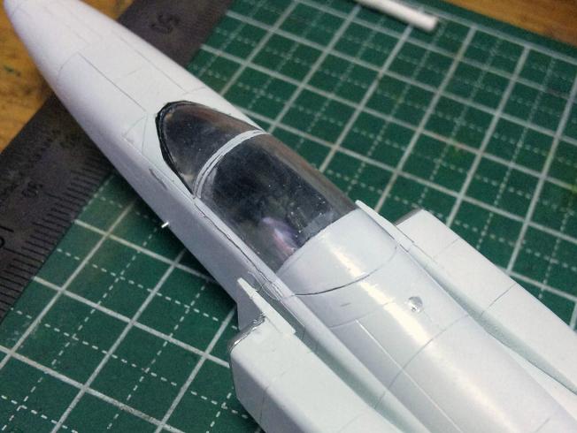 昨晩ネットでX-29の画像を漁っていた際、キャノピー後部は実は真っ白く塗られている事に気づいたので、今日早速塗り直しました。