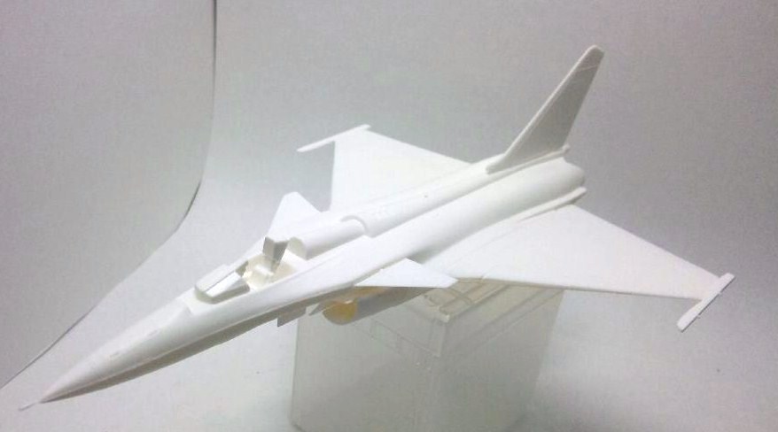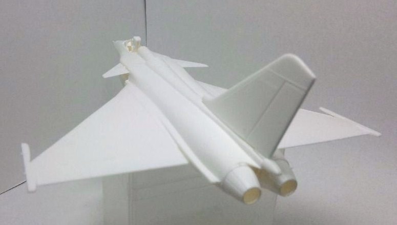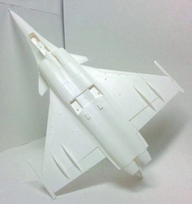機首付近などはイタレリよりも少し細めで、カナードも小ぶりです。デモンストレータ機だからか武装も翼端のミサイルしか付属しておらず、右インテークの機関砲もありません。