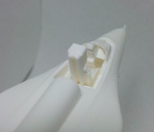 コクピット。大体のキットにおいてコクピットは床とランディングギアの格納庫が別パーツ化していることが常ですが、このキットは珍しくこの両方が本体パーツと一体化してるんですな。