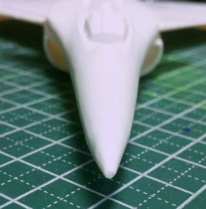 機首は合わせ目周辺をのモールドを彫り直し。機首先端のピトー管は新たに作り直すべくカットしてから穴を開けました。