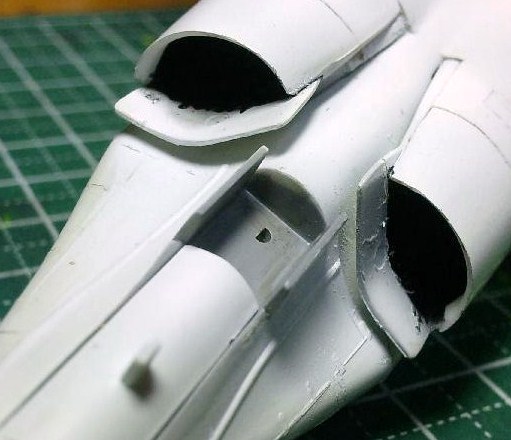 インテーク内部もマスキングして塗装。ただ、非常にやりにくい箇所であるので、どうしても少しはみ出てしまいますね。