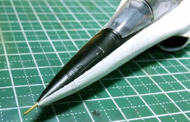 機首には短いピトー管を接着。ここはかなり折れやすいので、最初からこうやって自作した方が良いと思います。
