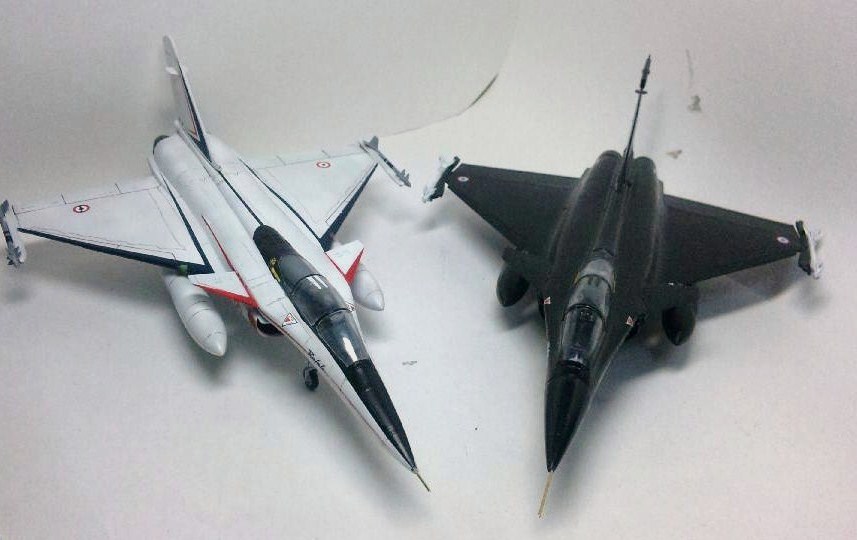 タミヤイタレリのラファールCと。こうも対照的な色をしていると、全く別物のように見えますね。これから他の型を作るかは未定ですが、いつか全機種揃えてみたいですね。