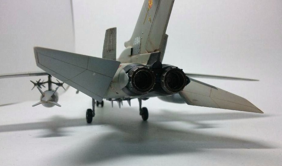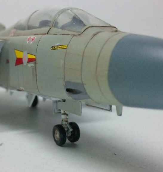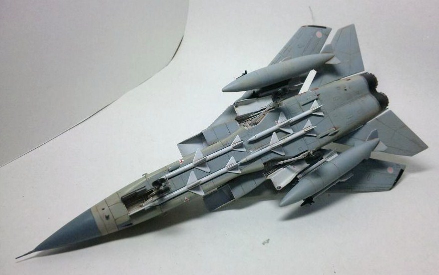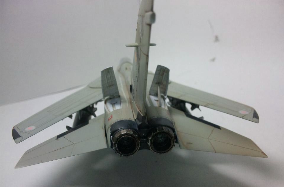 武装は翼下パイロンのサイドワインダーと胴体のスカイフラッシュが各4発。パイロンは翼の可動に合わせ根元で可動するようになっているのですが、そのままでは強度に乏しいので少し軸を太らせています。