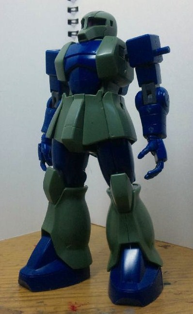 高機動型ザクは、推進剤の増量を図るべく太腿が太くなってるという設定なので、別に太くなるのは問題ないんですが、自分としては後ろにも太くしたいと思ってたり。