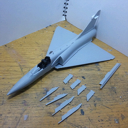 今日のミラージュは、昨日の迷彩塗装で塗料がはみ出ていた部分のリタッチと武装類の塗装をしていました。