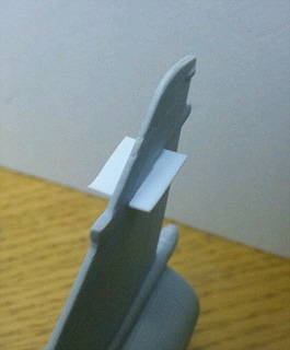 あと、尾翼の整流板(?)は切り出した際に片方がどこかへ飛んでいったので、新たに0.5ミリプラ板で制作。接着剤が乾いたらちゃんと整形する予定です。