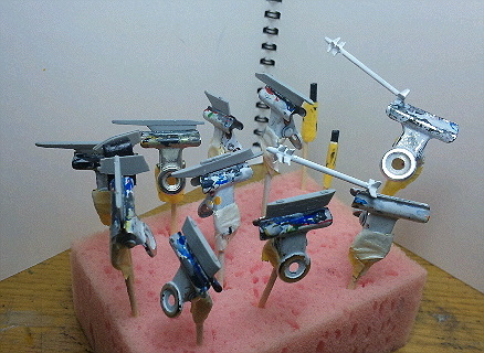 今日のミラージュは、ミサイルのハードポイントやらその他本体の細々としたところを制作。とりあえず言う事は、とにかくバリやパーティングラインが多いです。処理は簡単ですが、何せ数があるモンですから・・・まあミラージュに限らず、グリペンやラファールにも多々見られましたがね。