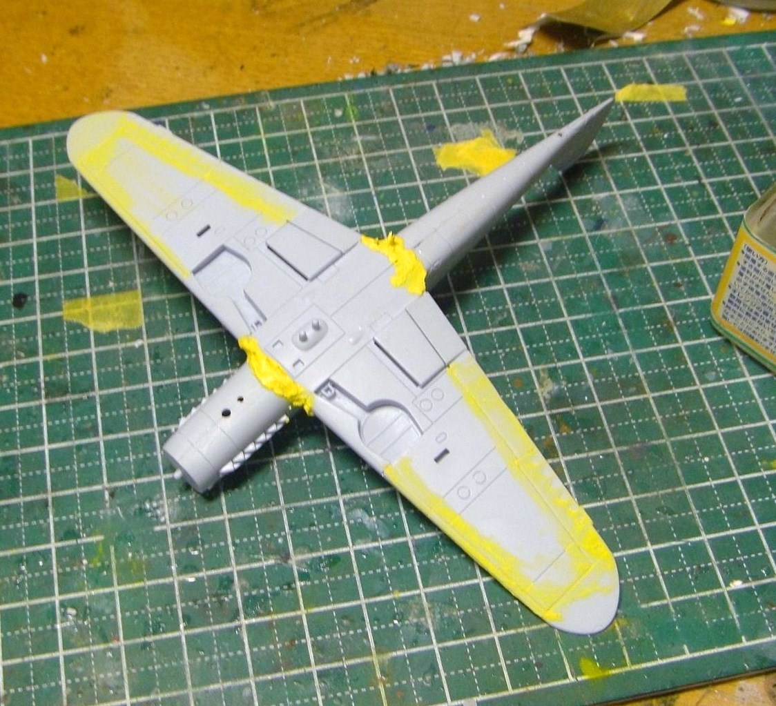 次にやるのは翼と胴体をくっつけて、隙間にパテを詰める作業かなぁ。