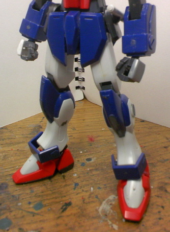 脚部は、太股は延長が必要に思えるくらい短めだったりするSEED系キットでは珍しく、そのままでも十分な長さがあります。