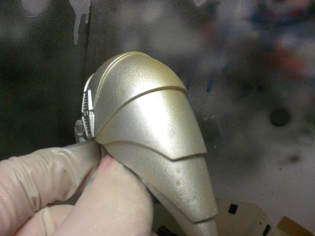 その後はN君(コメント欄においてはμμ〈ミュー・ミュー〉と名乗ってます)と明日いつ集合とかFAガンダムについてナントヤラとかそんな話を電話でさんざ喋ったあと、ずっとほったらかしにしていたオージェの金色の部分をエアブラシで吹いてました。