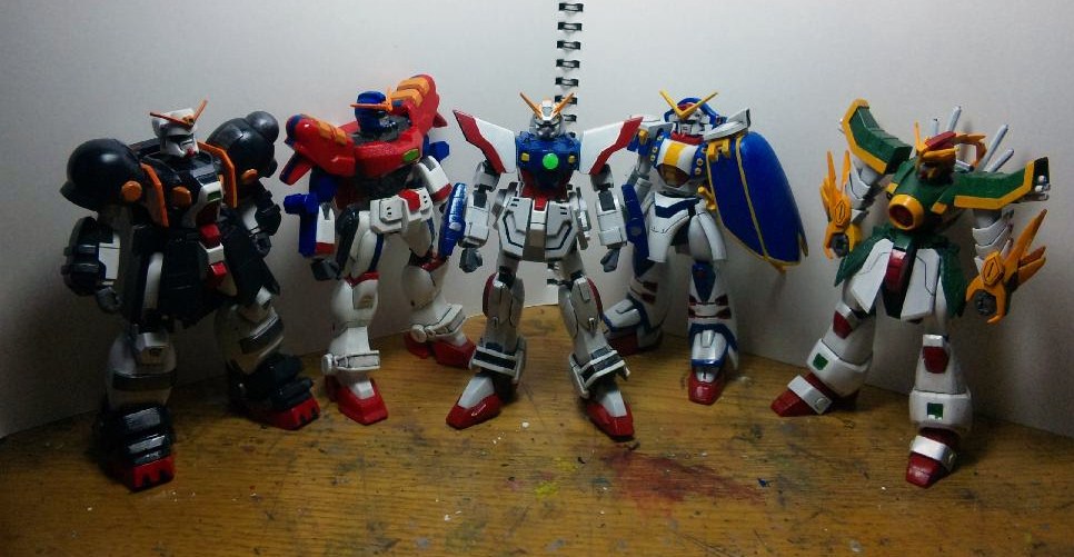このキットは色分けも雑で可動範囲もあまり広くないですが、小改造と塗装を根気よくやれば結構見栄えが良くなります。そしてやっと悲願のシャッフル同盟が集まったぞォ~!