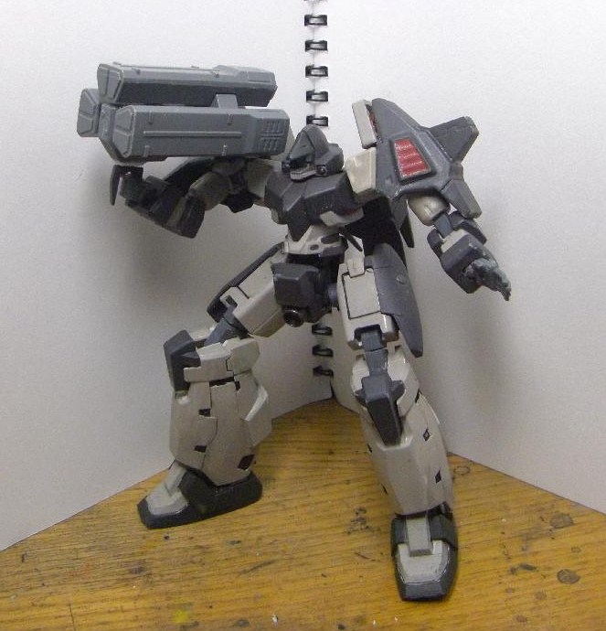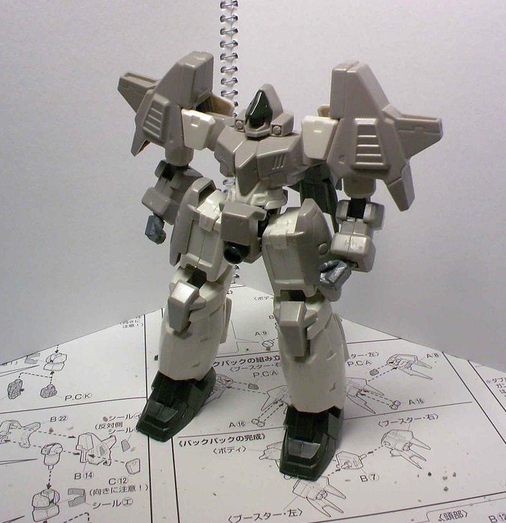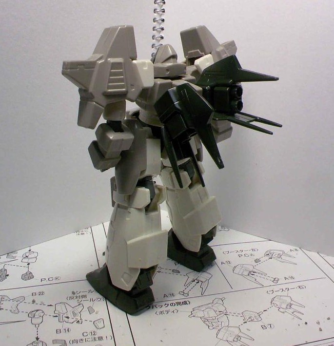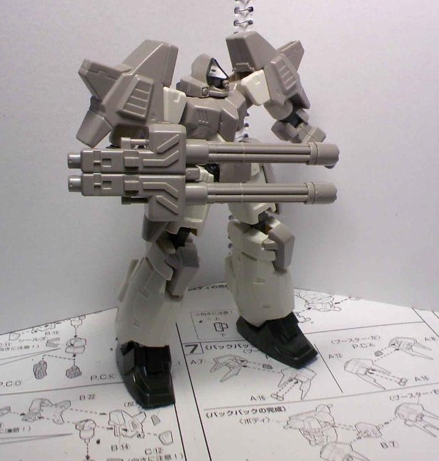リアビュー。バックパックはPCで可動します。1/100HGではBPに武装がマウントできたのですが、このキットでは再現されてません。