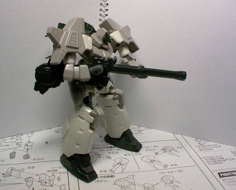 武装はこのビームキャノンとダブルガトリングガンのみ。1/100にはあったバズーカと肩のミサイルポッドは再現されてません。もっと言えば設定上存在するマシンガンが無いのは・・・