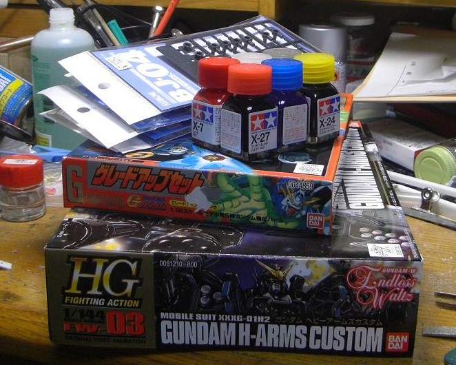 今日の戦利品。真中の箱は、先日言ってたGガンのグレードアップアーツセット(つまるところの武器セット)。普通に発売されている(限定品や食玩などの類を除いた)ガンプラの中では最安値と思われる定価200円(ヨドバシでは147円)です。