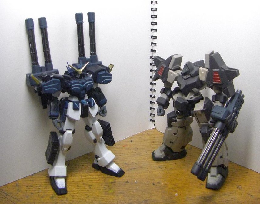 ヘビーアームズと比較。サーペントはリーオーの延長にあたる汎用機だそうですが、見てくれや武装の所為でヘビーアームズと同様の重戦闘用MSに見える・・・ああでもAK47みたいなマシンガンとか似合いそうだなぁ。