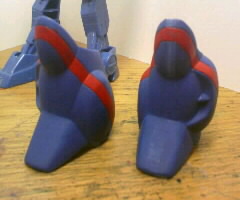 脚アーマーの赤いラインは、D-1よりも深めにモールドされている為、ちょいと紙ヤスリで擦っただけでモールドが消える事はなかったです(D-1の時は、600番で軽めに水研ぎしただけでゴッソリ無くなりました。D-3のラインは他の2機が凹モールドだったのに対し、凸モールドでした)