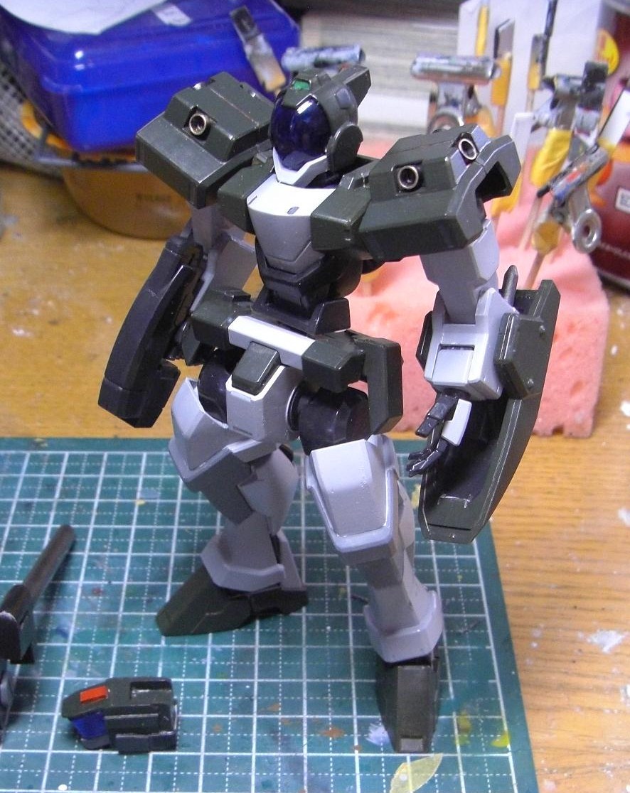 今回カラーリングは重装型+陸戦型という事で、緑色のロービジ仕様にしました。