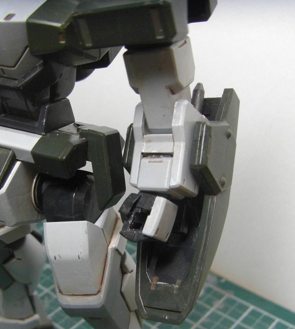 合わせ目は基本的に殆ど出ないのですが、胴体と腕には目立つ合わせ目があるので、二の腕のみ合わせ目を消してあとはパネルライン風に処理しました。