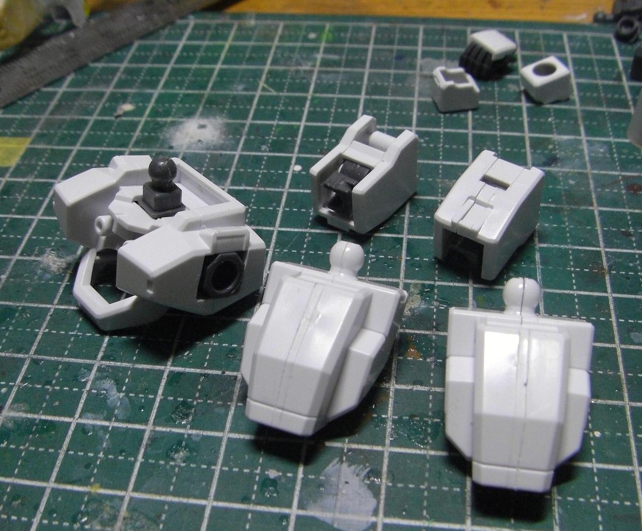 脚の付け根やスプレーガンも同様に接着。関節系のパーツは色を塗る予定なので、瞬着で接着しました。