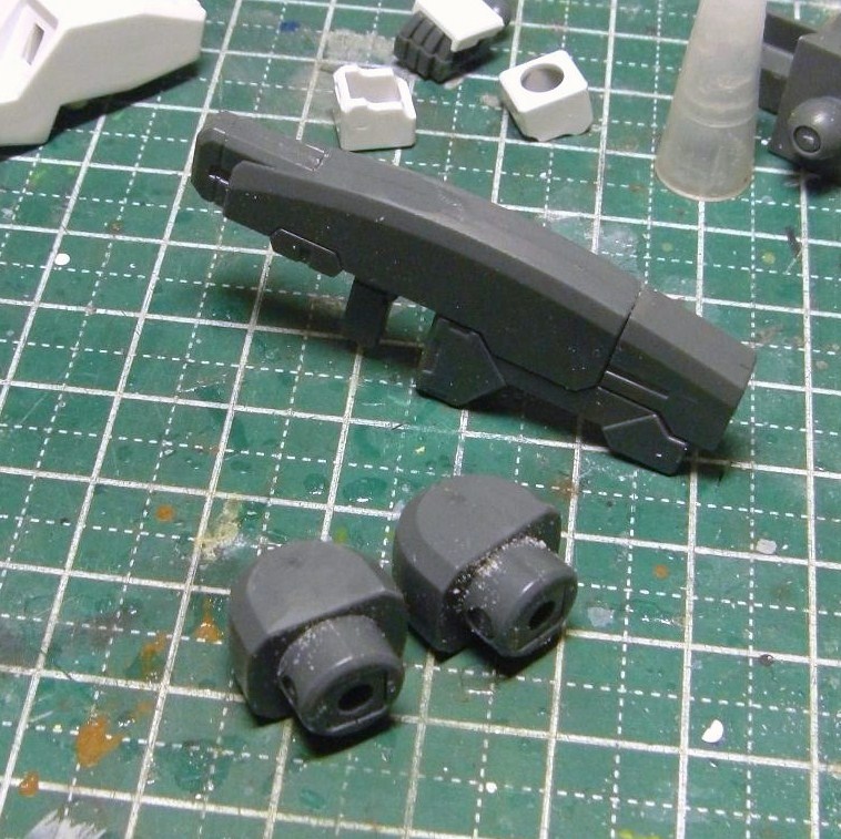まずは合わせ目の処理からですが、胴と腕は以前やったジェノアスと同じ事をしました。
