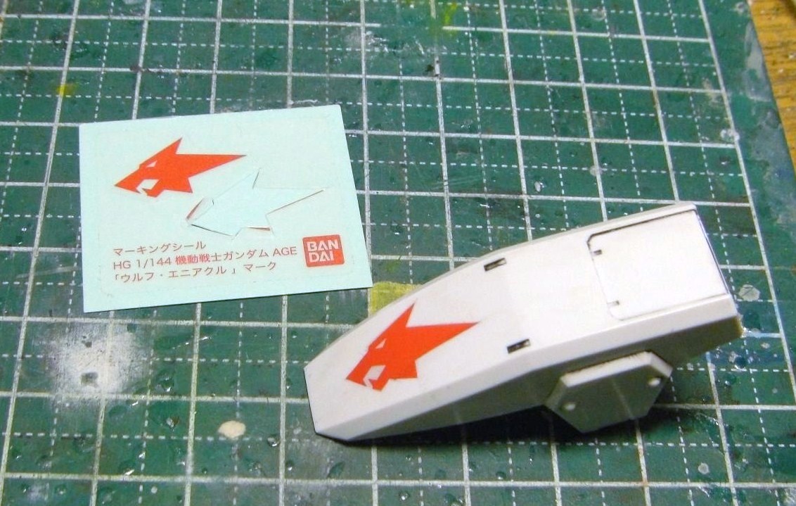 デカールはまだ発売されてない(するのかな・・・)ため、シールドの狼マークは余白をギリギリまでカットしたマーキングシ-ルを使いました。