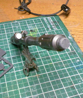 まずは背中のキャノン砲からですが、砲身はピンを切り落とせば後ハメ可能です。