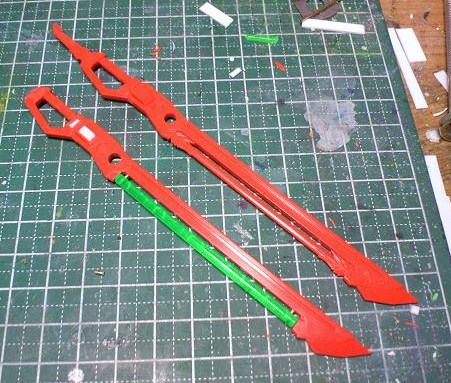 シュベルトゲヴェールは、刃をクリアパーツ(取り外し可能)に変更し、肉抜き穴を埋め、柄尻を発振器ごとカットしました。