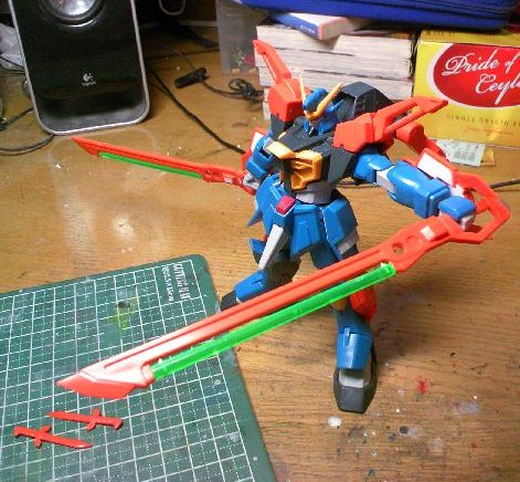 持ち手が足りず、カラミティ形態の部品は幾つか後回しになりますが、ソード形態だけであればオールおっけーです。