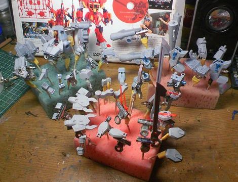 手足の合わせ目も接着してあるので、ぶっちゃけあと残ってるのは手持ちの武装くらいなモンなんですが。