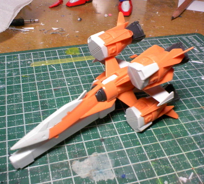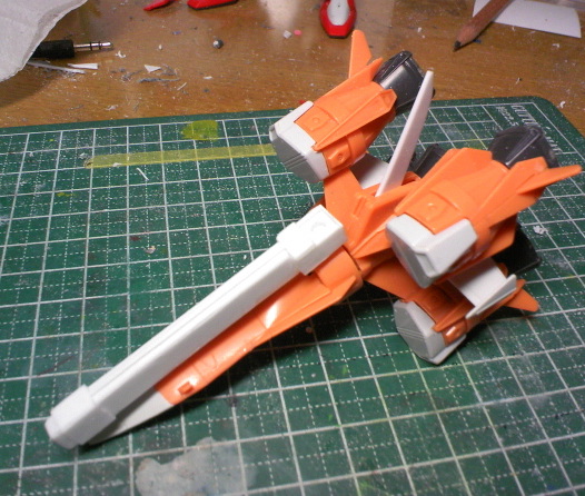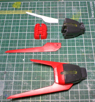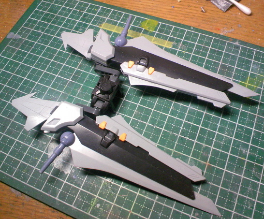 本体はそんなに手は加えなくても良いのですが、バインダーというか下の可動するスラスターは合わせ目が目立つのと、片方のスタビライザが折れていたので、そこらへんを弄っていました。