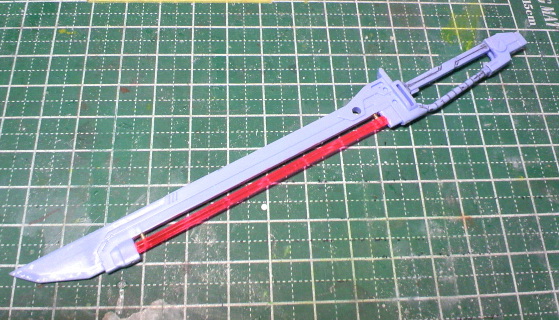 忘れていたのは対艦刀のビーム刃ですが、こちらはビームを切り取って綺麗にして、余ったランナー製のクリアーパーツに変更。両端に仕込んだ真鍮線で取り外し可能となっています。
