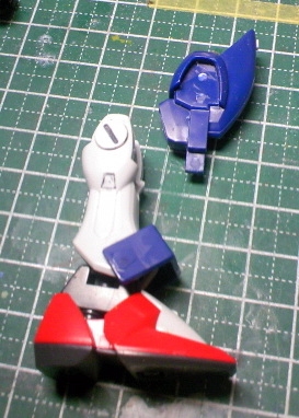 あと、肩アーマーは色分けの問題で、事前に色を塗ってから組み立てました。