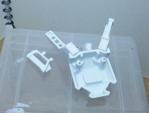 HG用に作るため、今回は最低限必要なディバイダー・バックパック・エネルギータンク・ビームマシンガンのみ製作。全部真っ白です。
