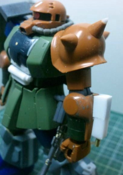 肩パーツは当の昔に紛失しているので、旧ザクの物を改造して使いました。