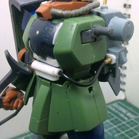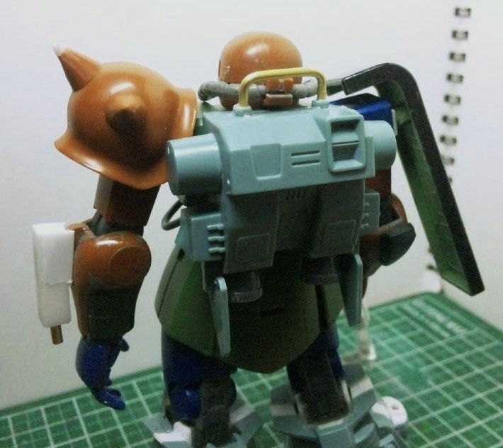 パイプは旧ザク側で固定され、旧MSV 側はただ穴に通しているだけとなっています(塗装を楽にするため)