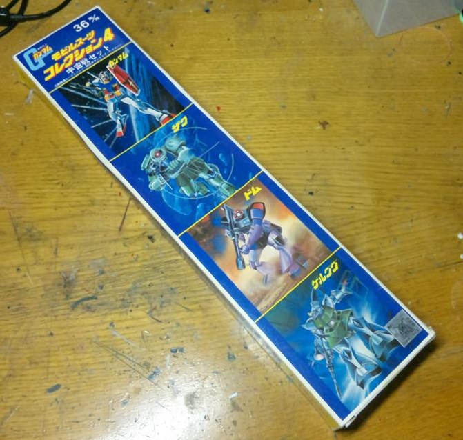 ガンダム、ザク、ドム(宇宙戦セットとの事なので、リック・ドムとすべきなんでしょうが)、ゲルググの4体セットとなっています。